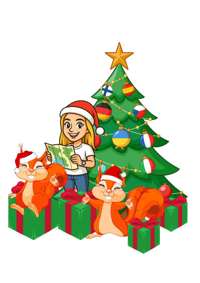 Nastja und die Eichhörnchen Busja und Ruzha wollen im Zauberwald den Weihnachtsbaum schmücken – doch die Kugeln sind über Europa verstreut. Helft ihnen, sie wiederzufinden! Настя та білочки Буся й Ружа хочуть прикрасити різдвяну ялинку в Чарівному лісі – але кульки розсипані по Європі. Допоможіть їм їх відшукати!